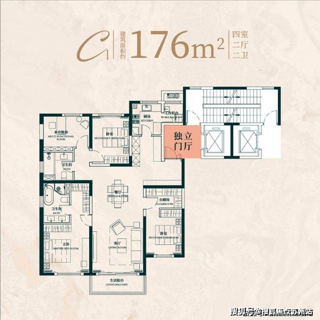 该户型几乎保留了前一个户型所有的优势,但在尺度感、私密性和舒适度上又有突破。