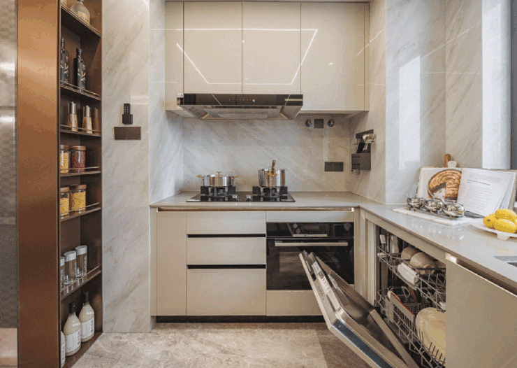 厨房精装产品的使用上,保利精选方太高端系三件套,有效解决中式烹饪过程的油烟烦恼,例如面材采用防油膜更便于清洁 ;手势开机模式令烹饪更便利,定制更适合东方家庭的幸福智慧厨房。