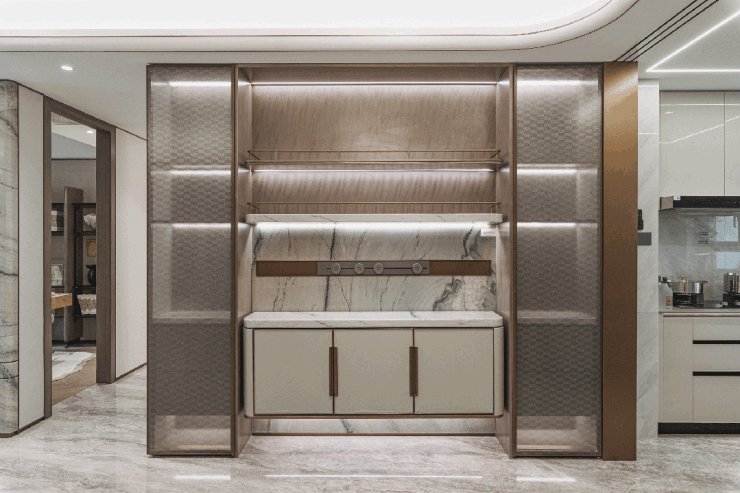 保利海上瑧悦售楼处电话☎:✔✔先说收纳,保利·海上瑧悦基于用户在玄关场景下的常用功能,在玄关处交付了约2.8米的超长玄关收纳柜,同时,针对餐厨收纳保利·海上瑧悦创新打造900mm立案的双面岛台收纳空间,将厨房收纳扩容30%,这在同级别产品中十分罕见。