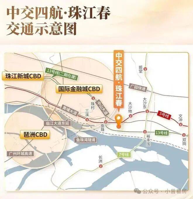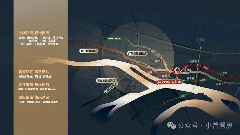 地铁交通:5/7/13三地铁交汇,约500米到鱼珠地铁站,0换乘一站到天河,直达珠江新城。而前往金融城,也仅需短短5分钟车程,20分钟即可抵达珠江新城,这样的交通优势无疑为鱼珠片区的发展注入了强劲的动力。